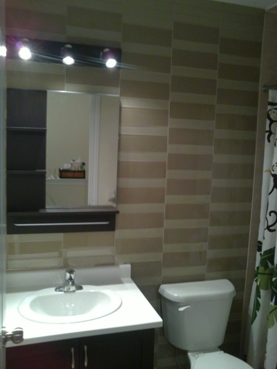 Beaker from Canada helped remodel a bathroom wall using advise from the AsktheBuilder site. Here is her story.