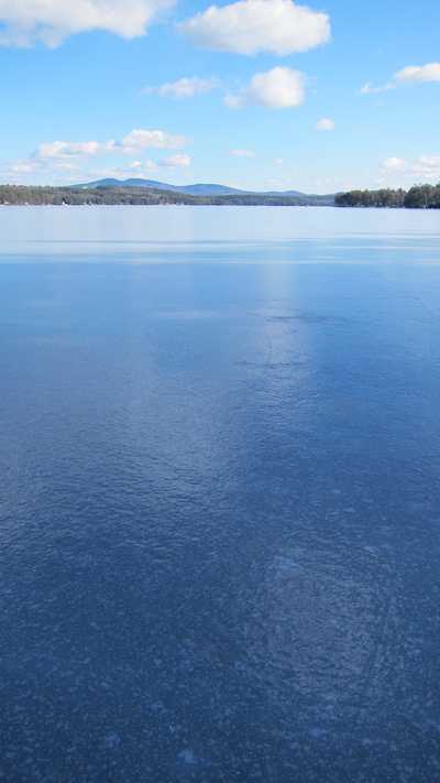 You're looking over at Gunstock Mountain in the distance. If you had one of those ice-sailing boats up here today, you'd be flying down and across the lake. I know my good friend Roger wishes he were up here with one of those ice boats. A nice stiff wind was blowing when I took this photo. I'd estimate the ice to be at least a foot thick right now.