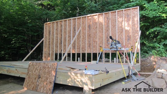 Before you add the plywood or oriented-strand board sheathing to the wall, you must square up the wall. Failure to do this will cause you great headaches and embarrassment.
