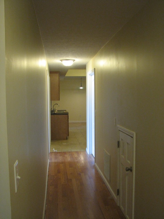 Hallway: The water heater was installed bu the contractor between these two load-bearing walls. Patrick had to move the water heater in his very first project when he moved in back in 2007.