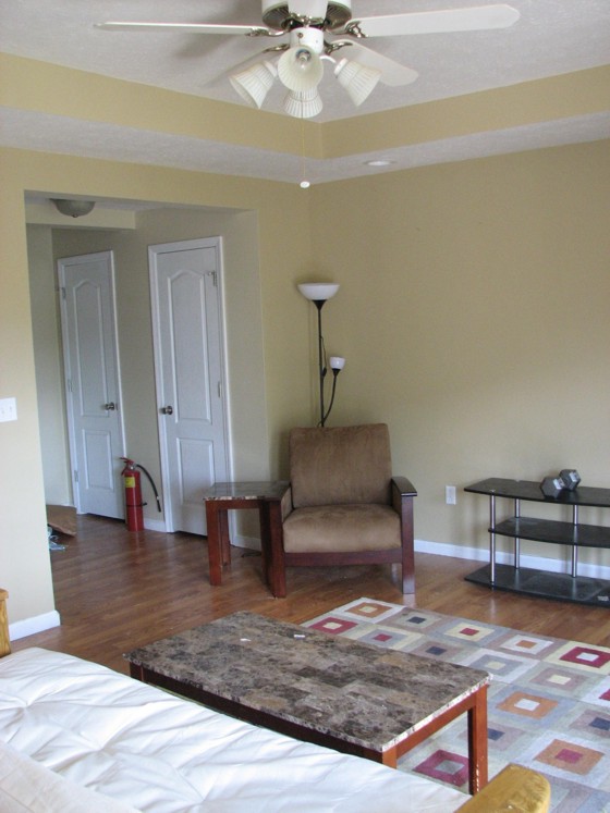 View 2 of the living room shows the "before" picture for the window that was put in last weekend. Unfortunately, he doesn't have an after picture yet.