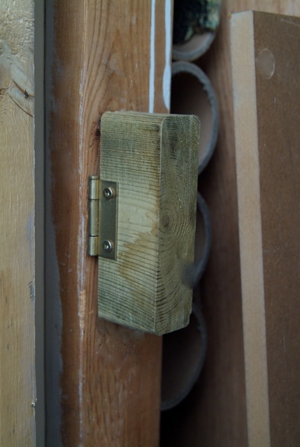 Picture 2: For you to go in and out of the shed. If you want to keep it open, you can always attach a 'hasp and staple' type of hatch to the wood or just use a 'hatch and staple' latch by itself."